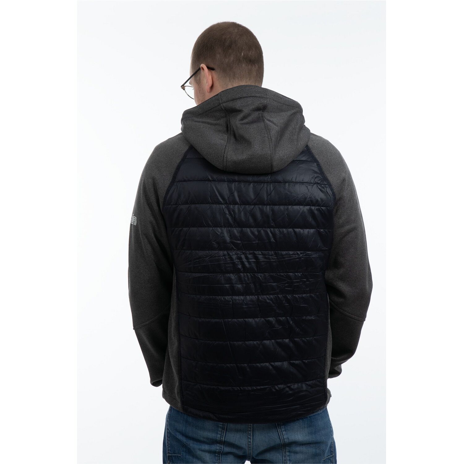 Der Schnitt ist dabei leicht tailliert gehalten und bietet Ihnen sehr gute Bewegungsfreiheit. Kontrastfarbige Ärmel und Einsätze an den Seiten, Kragen und Schultern sorgen für ein modernes Design. Verschlossen wird die Jacke über einen durchgehenden Frontreißverschluss mit einer innenliegenden Windschutzpatte, welche in einem hohen Stehkragen mit Kapuze endet. Für einen sicheren Sitz ist der Saumabschluss mit einen Tunnelkordelzug und Stoppern verstellbar und für bessere Sichtbarkeit mit Reflexapplikationen ausgestattet. Ein verdeckter Reißverschluss im inneren Rückenteil ermöglicht zudem das einfache und individuelle Veredeln der Hybridjacke.