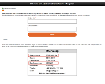 Und so einfach geht die Rücksendung bei Arbeitsschutz-Express: